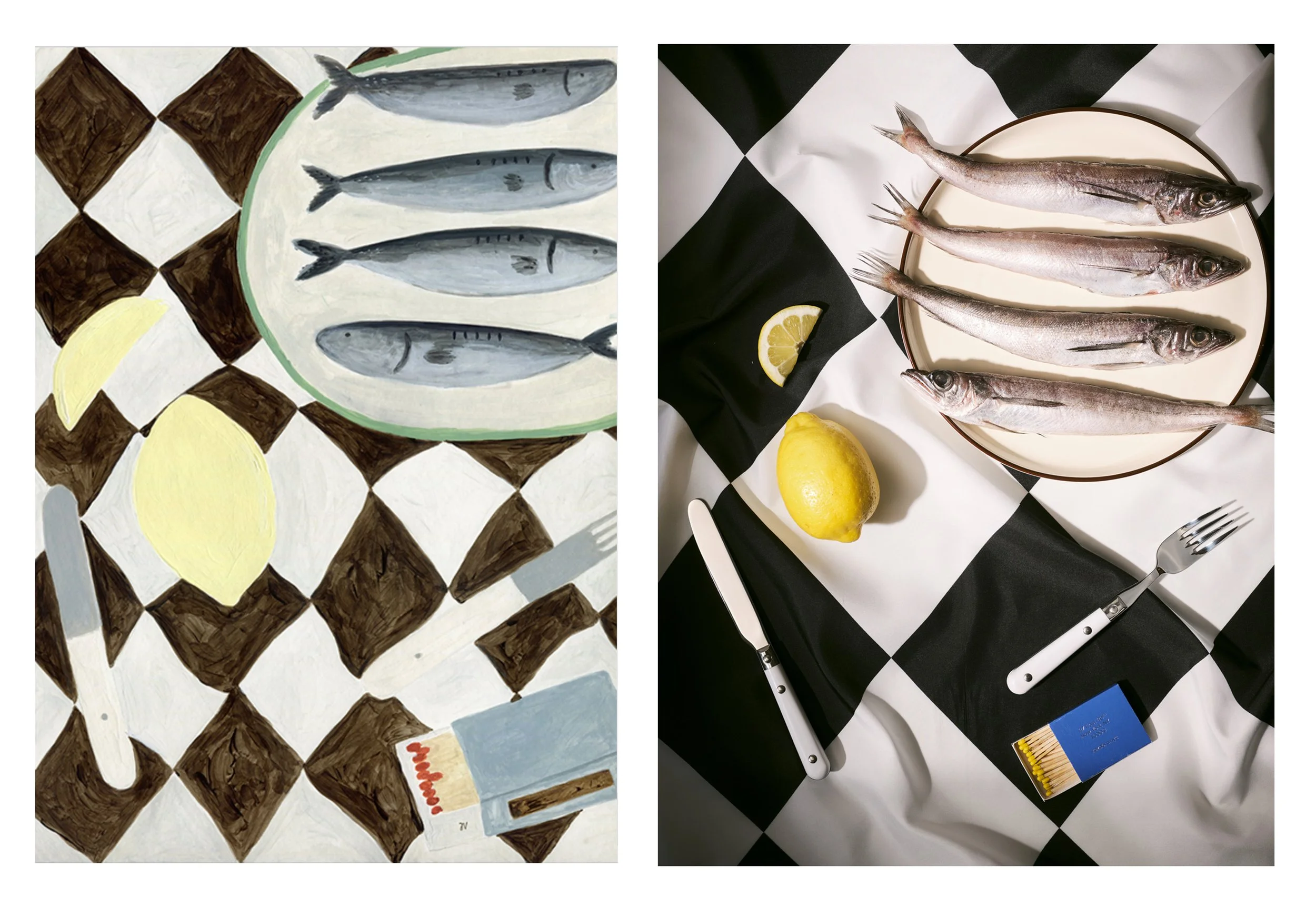 fish still life, still life painting, photo realism, Still life stylist, props stylist new york